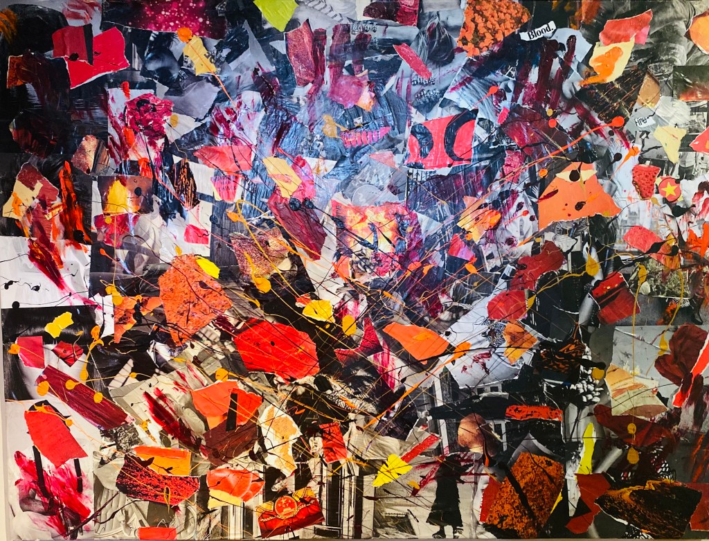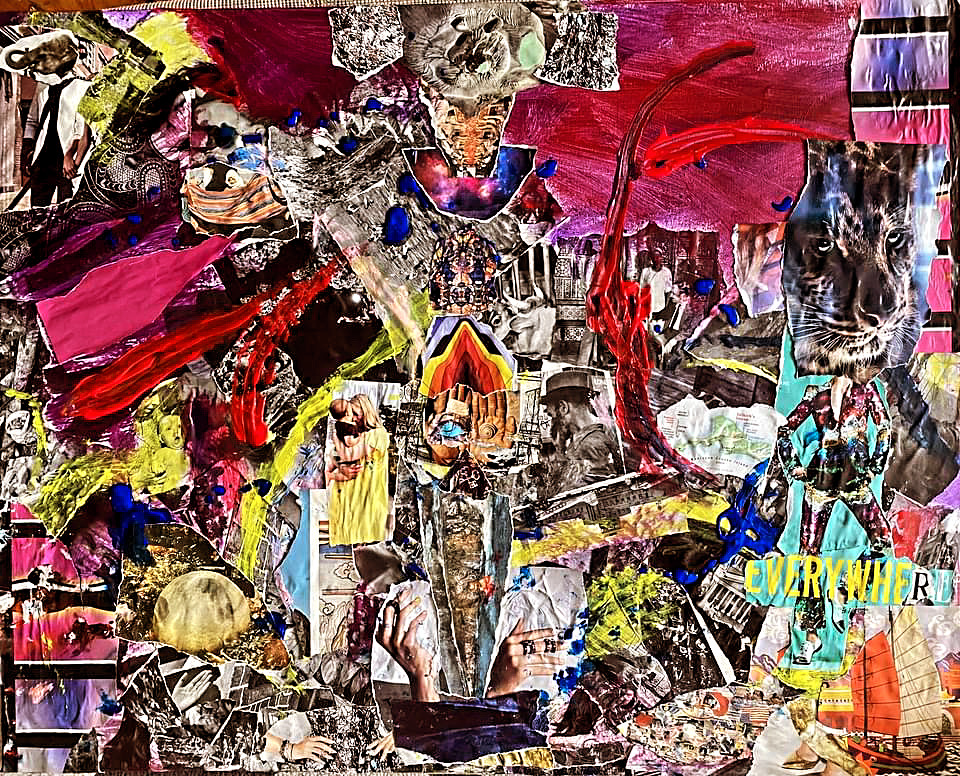 My work is rooted in controlled chaos. Beneath the surface disorder, there is structure, though it may not be immediately visible. Through collage, paint and found objects, I construct layered compositions to create canvases that evoke nostalgia, humor, pain, and melancholia. Social commentary often emerges, though it is never forced.